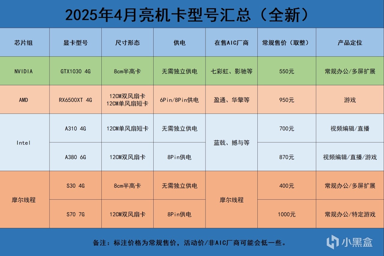 單說全新穩妥的亮機卡,目前有四個上游廠商可選,各有針對的使用場景: