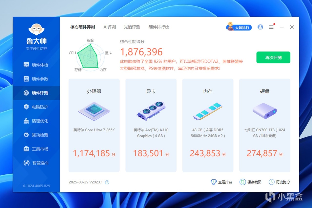這個分數比主流AMD RX6500XT略高,代表綜合性能更強,也是我推薦亮機卡用I卡的原因所在。