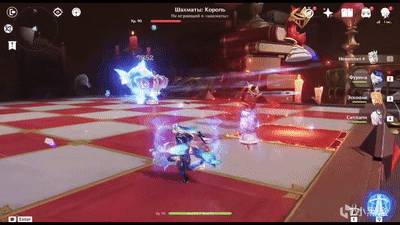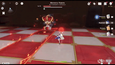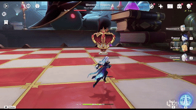 4、破盾後【國王棋】會下砸造成9個棋格的火元素範圍傷害,同時召喚三個騎士棋子跟蹤角色連續下砸,輸出完成後【國王棋】生成雷元素護盾。(此時需要冰系)