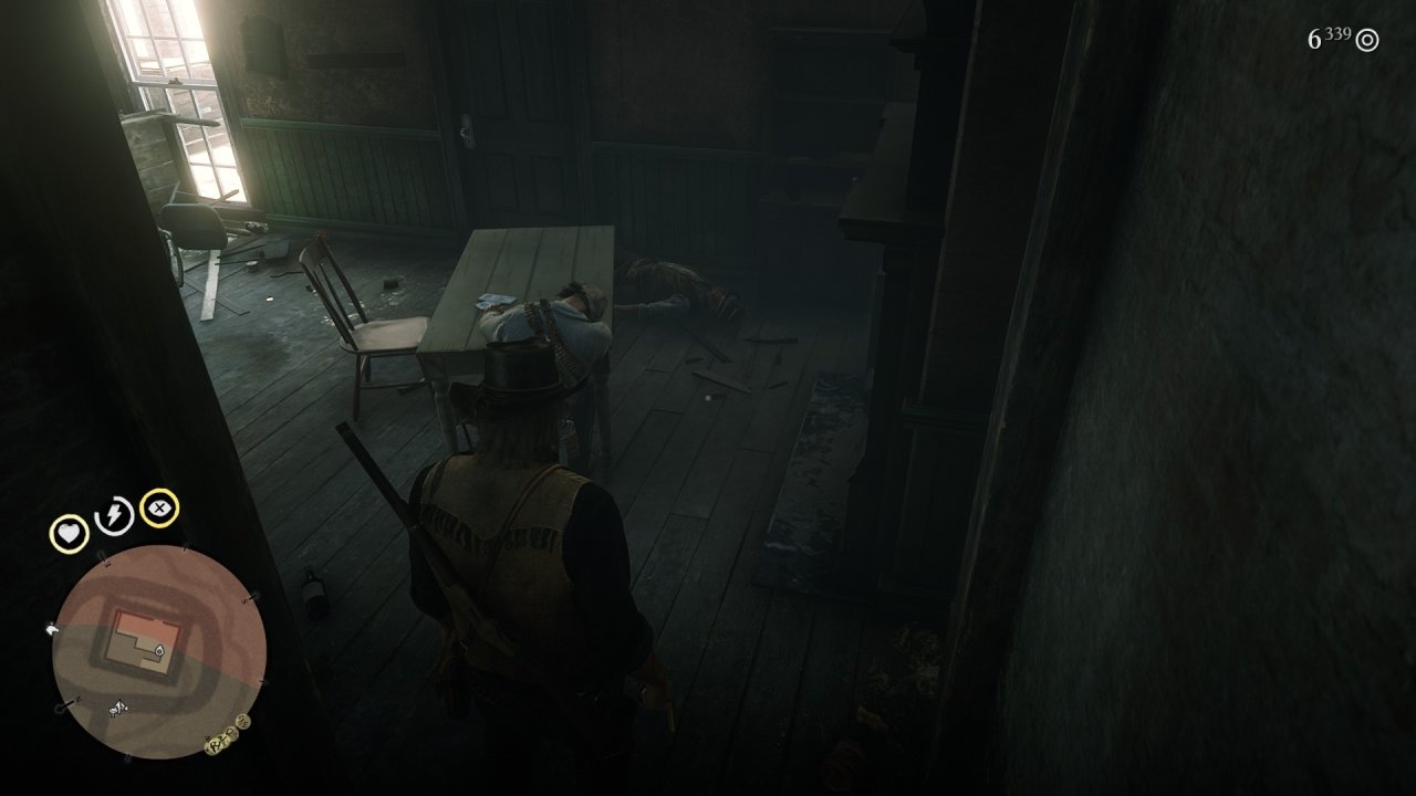 正門進來後,右手邊樓梯下去地下室,有兩個人在睡覺,直接開槍送走