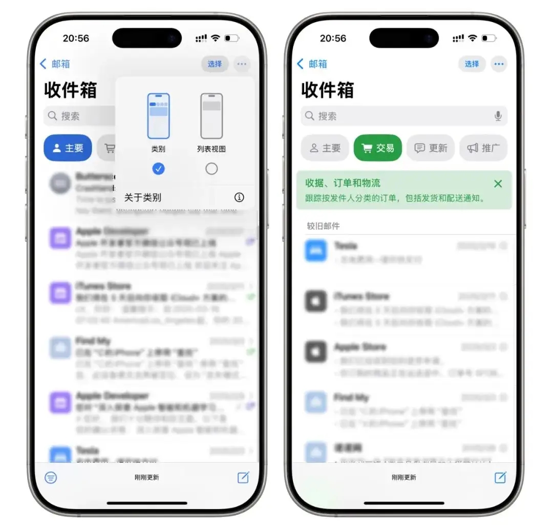 現在進入自帶的郵件 App 裏面,可以看到右上角多了三個點,可以選擇全新的類別選項。