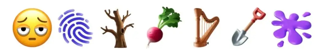 表情狂魔蘋果再次上線,本次又新增了整整七個新的 Emoji 表情,具體有:疲憊,指紋,無葉樹,根菜,鏟子,一灘液體。