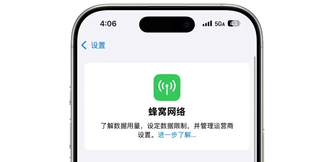 本次最重要的更新!現在 iPhone 終於支持了 5GA 網絡,相比普通 5G 網絡理論速度要快了十倍。