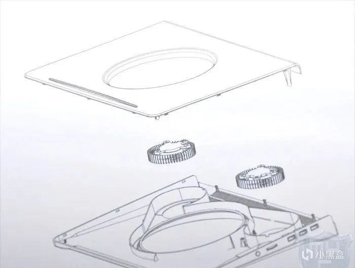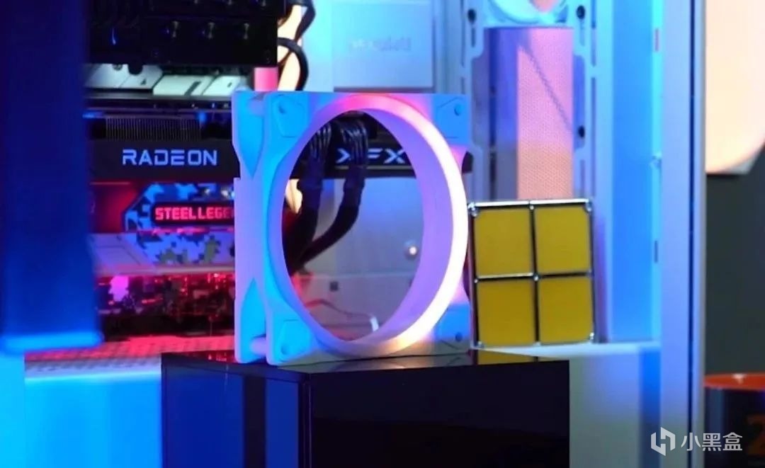 风扇分别坐落在散热器的左右两侧,它们的进气口位于底部。锥形的外壳提供了进气空间,内部配备有精心设计的导流结构:利用涡轮扇叶的旋转吸入空气,再从“圆环”的缝隙中均匀喷出。