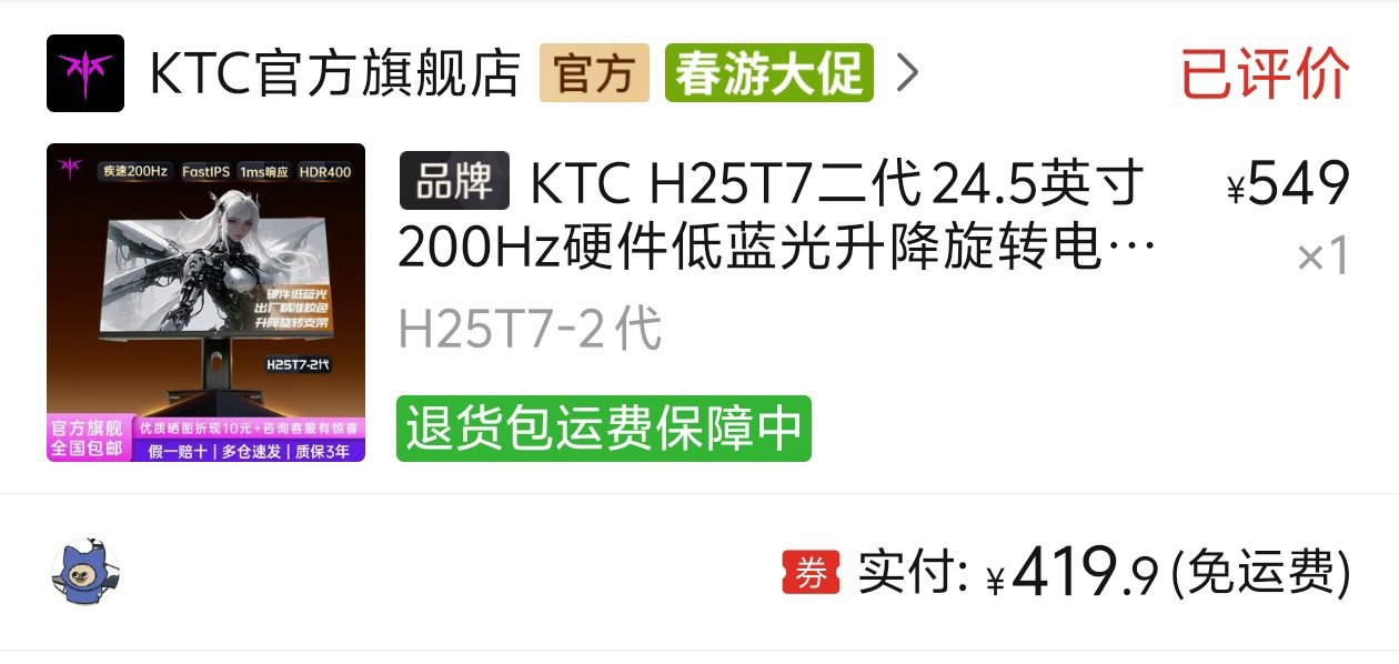 主顯示器:ktc h25t7 2代 24.5 1k 200hz 406(評價返現10元)
