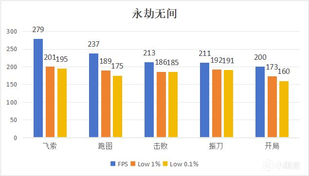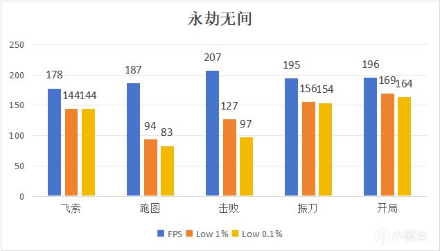 永劫無間平均FPS爲193幀,Low 1%爲138幀,Low 0.1%爲128幀。