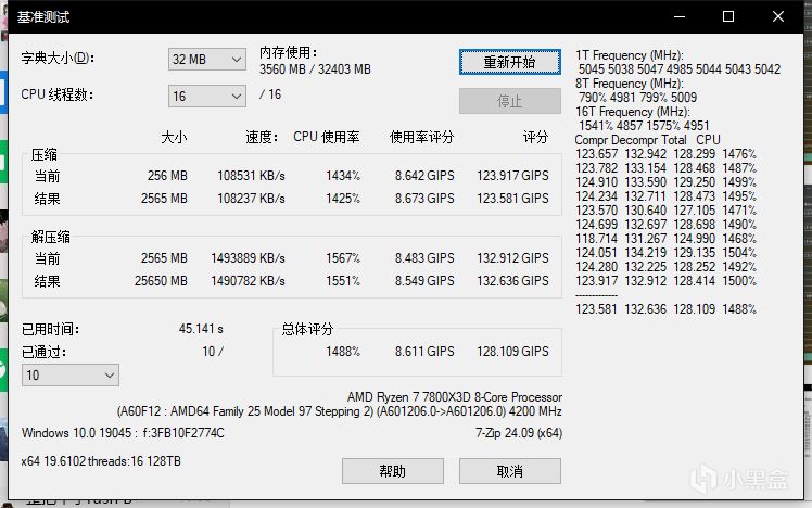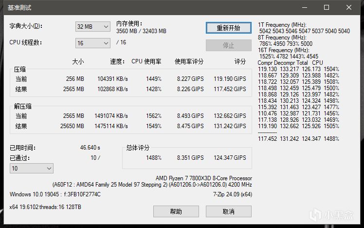 使用7Zip進行基準測試: