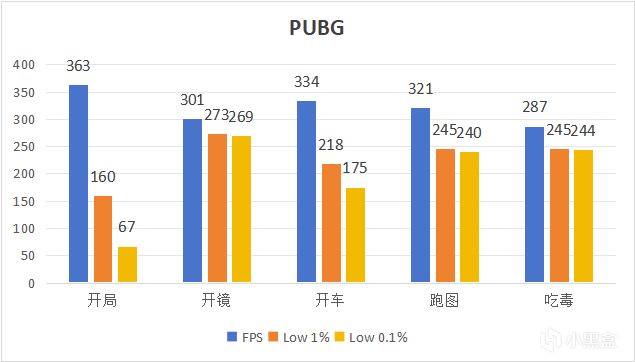 PUBG平均FPS爲321幀,Low 1%爲228幀,Low 0.1%爲199幀。