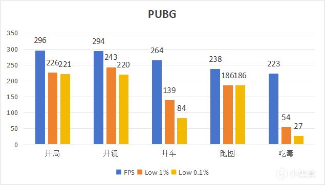 PUBG平均FPS爲263幀,Low 1%爲170幀,Low 0.1%爲148幀。
