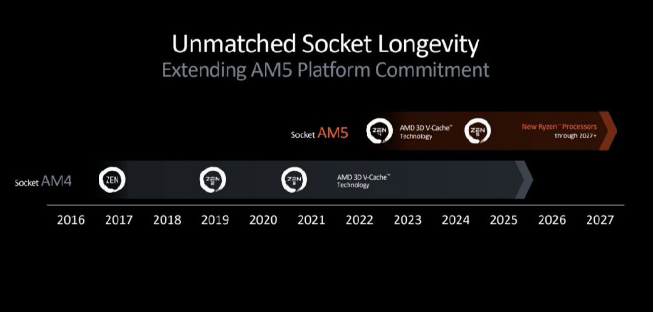 反观AMD的7000系、9000系CPU,用的是AM5新平台,AMD官方宣称支持到2027年发布的CPU,也就是说现在你用7500F这种CPU,配个B650主板,2027年只要板子没坏电源够,可以直接更新最新一代CPU