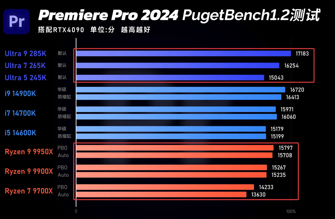两颗旗舰U的生产力水平差不多,英特尔凭借核显编解码优势,在视频生产力领域略强一些: