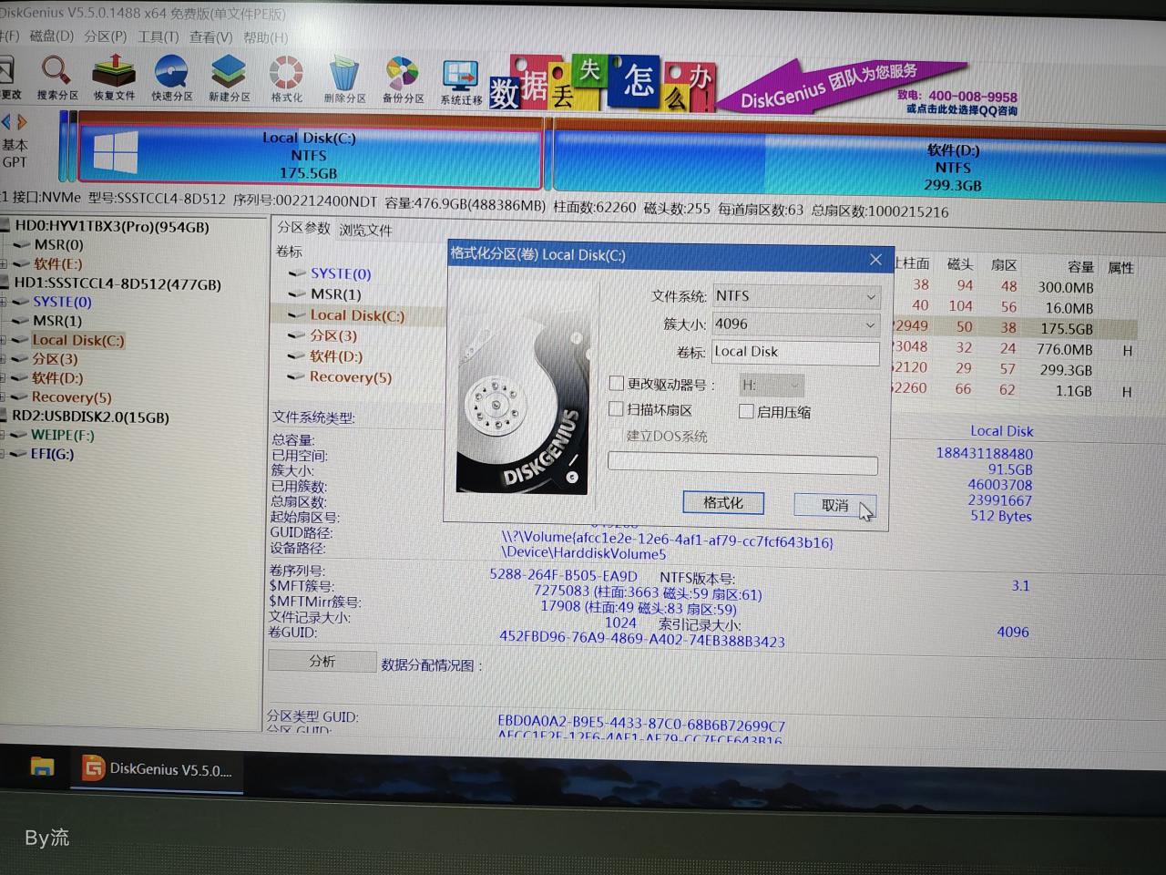 注意:如果想清空全部盤數據的話,只格式化你分的盤,其他的像你的PEU盤,MSR,SYSTE,分區,Recovery等就不要動。