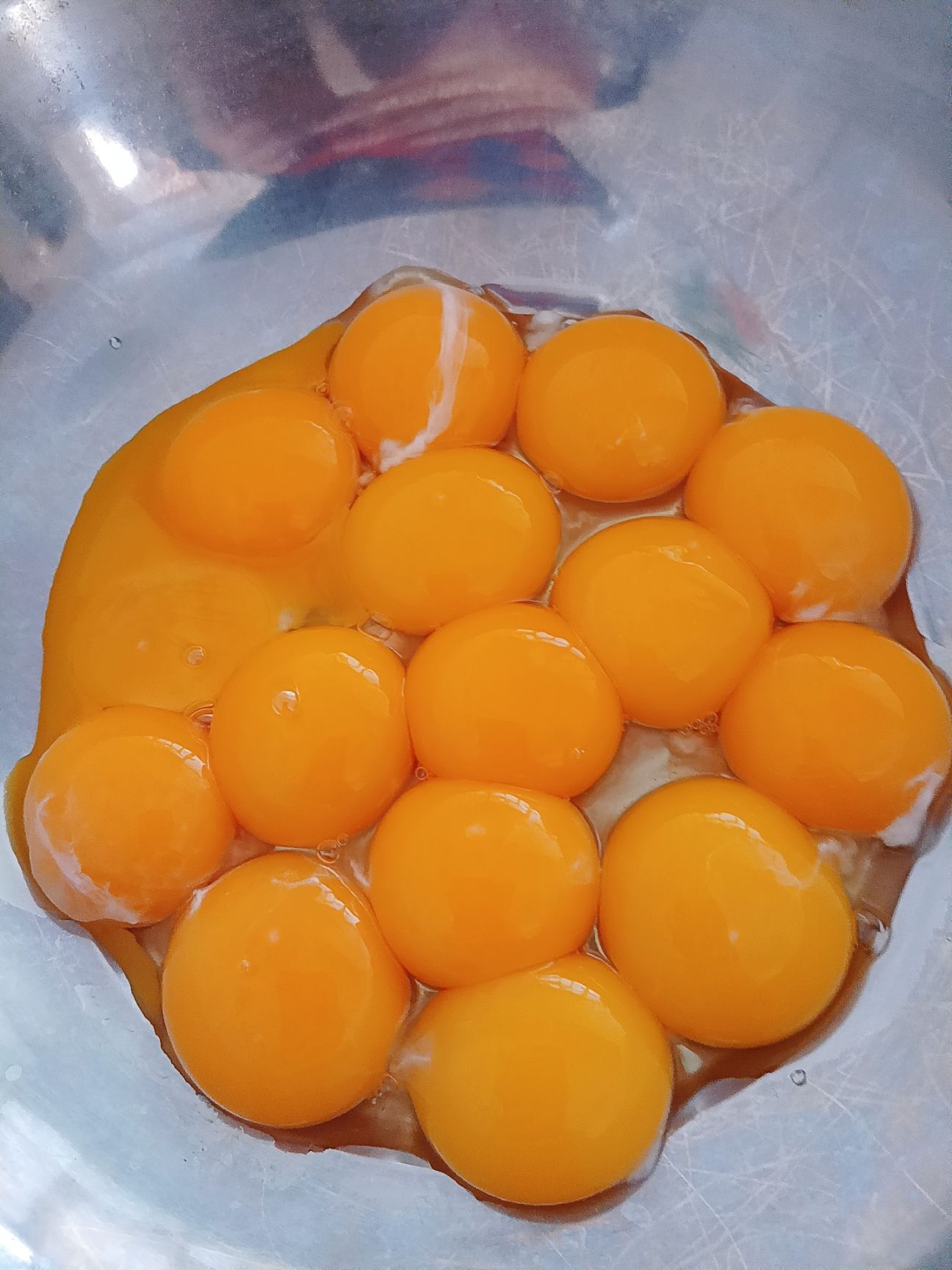 然后将15个鸡蛋的蛋黄与蛋清分离开。
