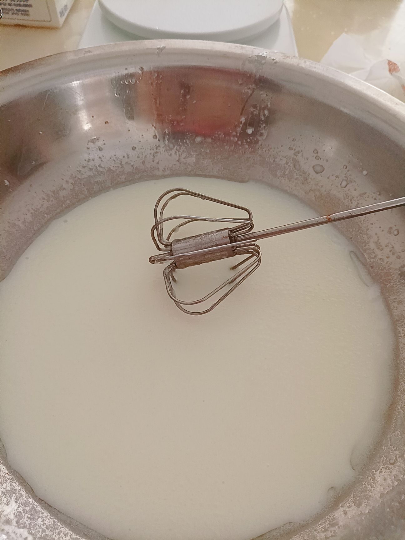 将玉米油与牛奶进行混合成酸奶状。