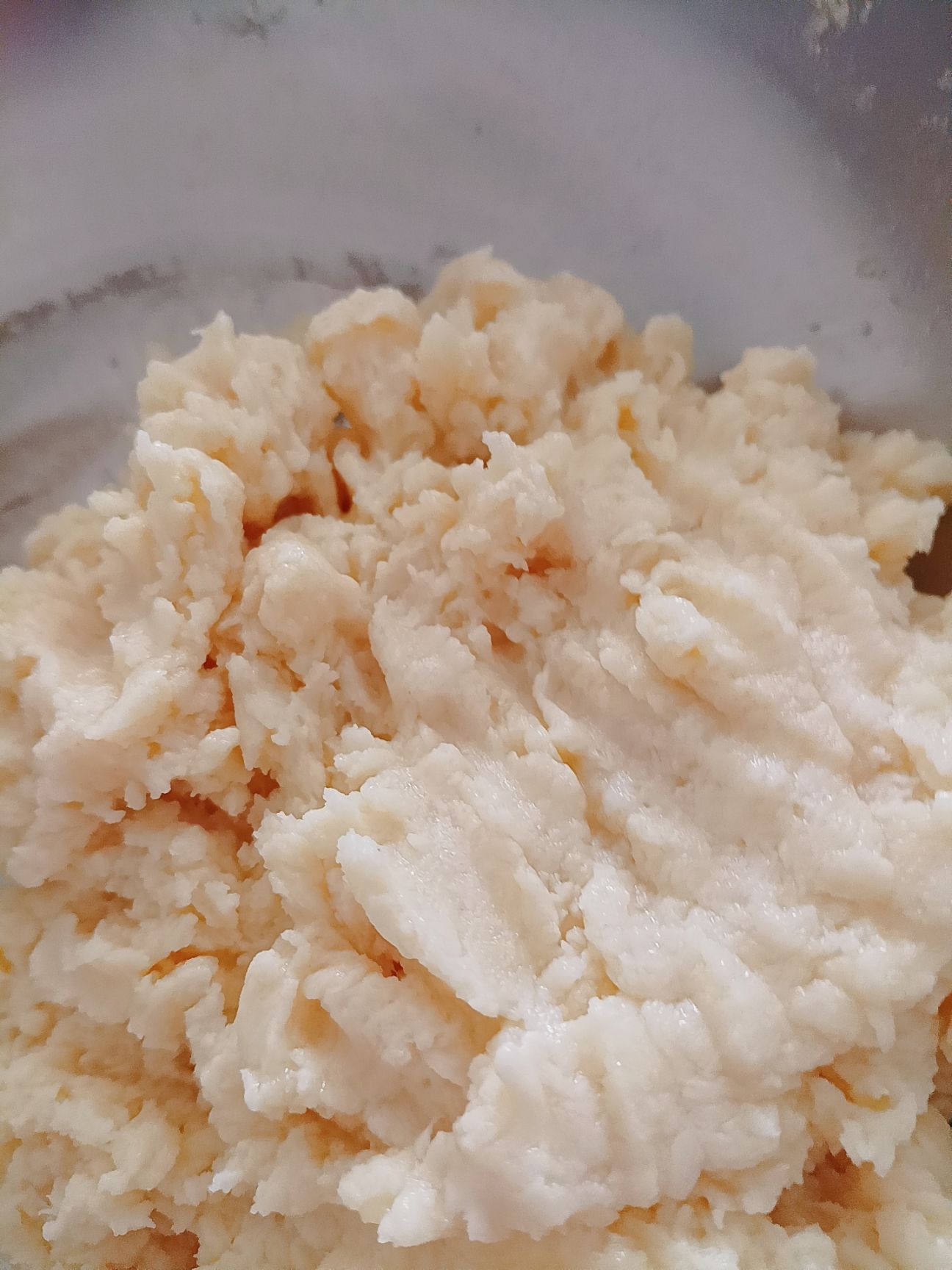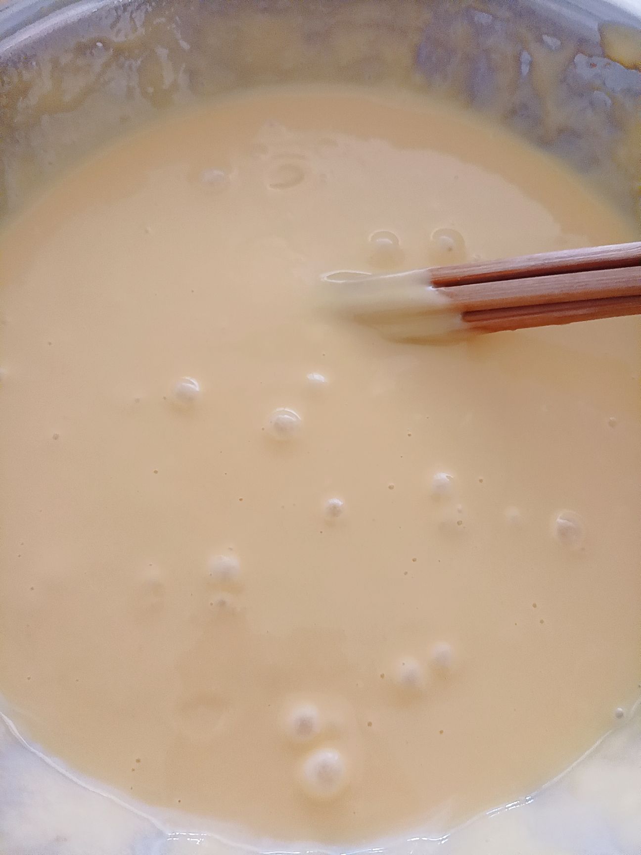 将面糊与鸡蛋黄进行搅拌。