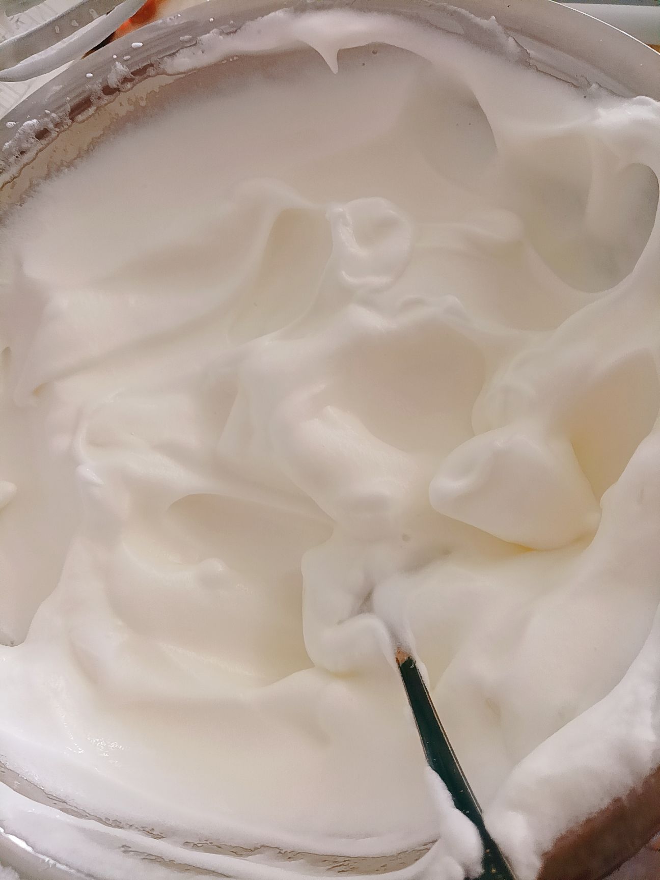 将105g白糖分三次加入鸡蛋清中进行打发,打发至有大弯钩。