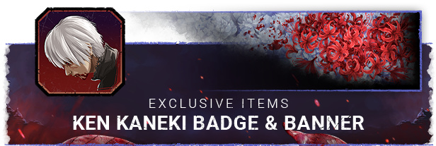《Tokyo Ghoul》章节包括专属金木研饰章和彼岸花横幅,仅可通过DLC获得。