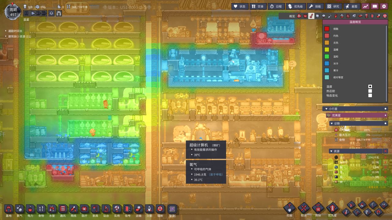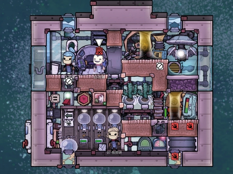 氧氣、溫度、氣壓、病菌、電力、排泄物……遊戲裏的生存要素多到能湊一本《五年高考三年模擬》。上一秒還在爲造出淨水器歡呼,下一秒可能因爲氫氣泄漏把基地炸成煙花。
