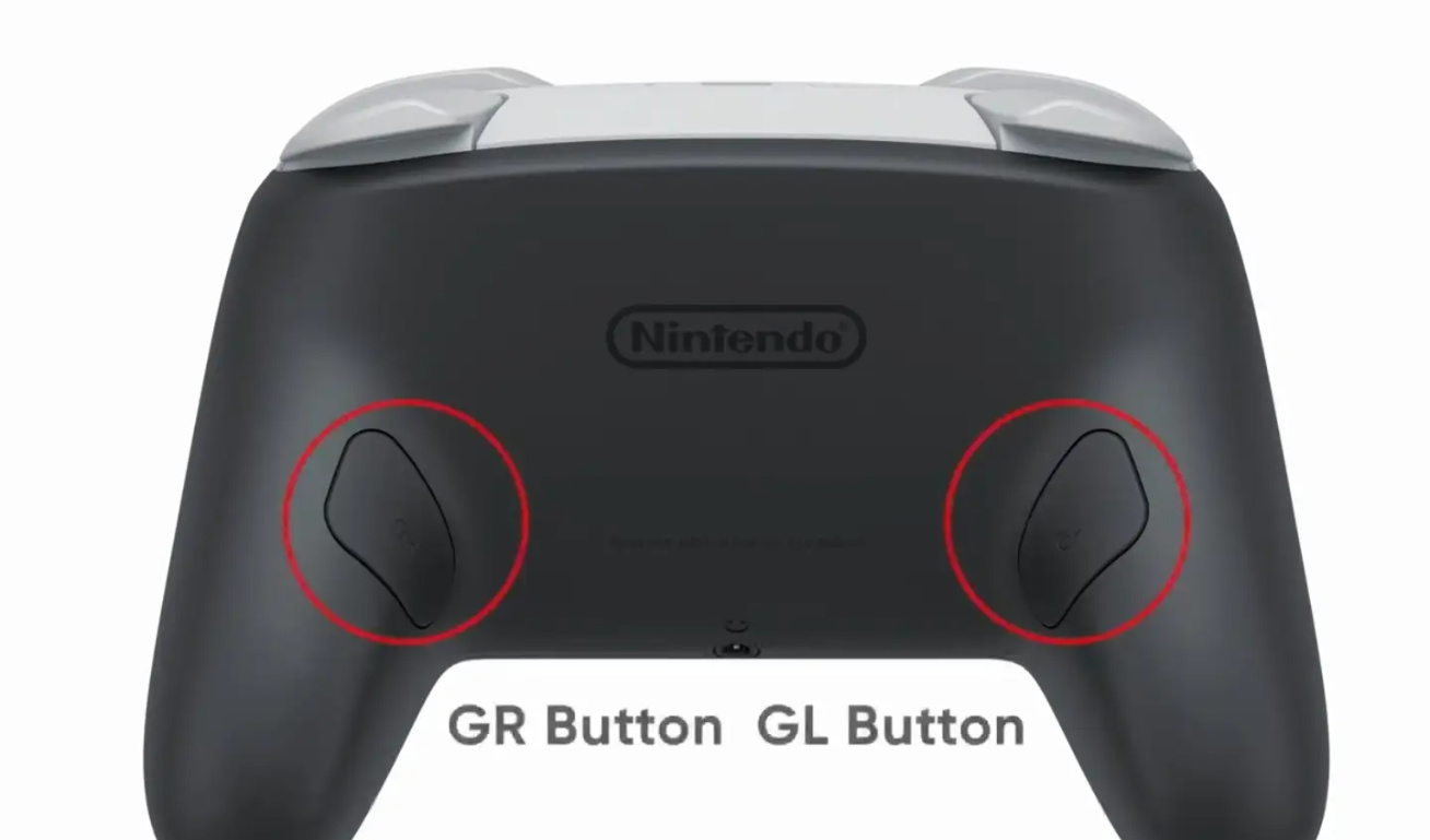 switch 2 PRO手柄,新增Chat鍵、耳機接口和GR/GL鍵。(C鍵爲語音功能按鍵,麥克風有降噪效果)