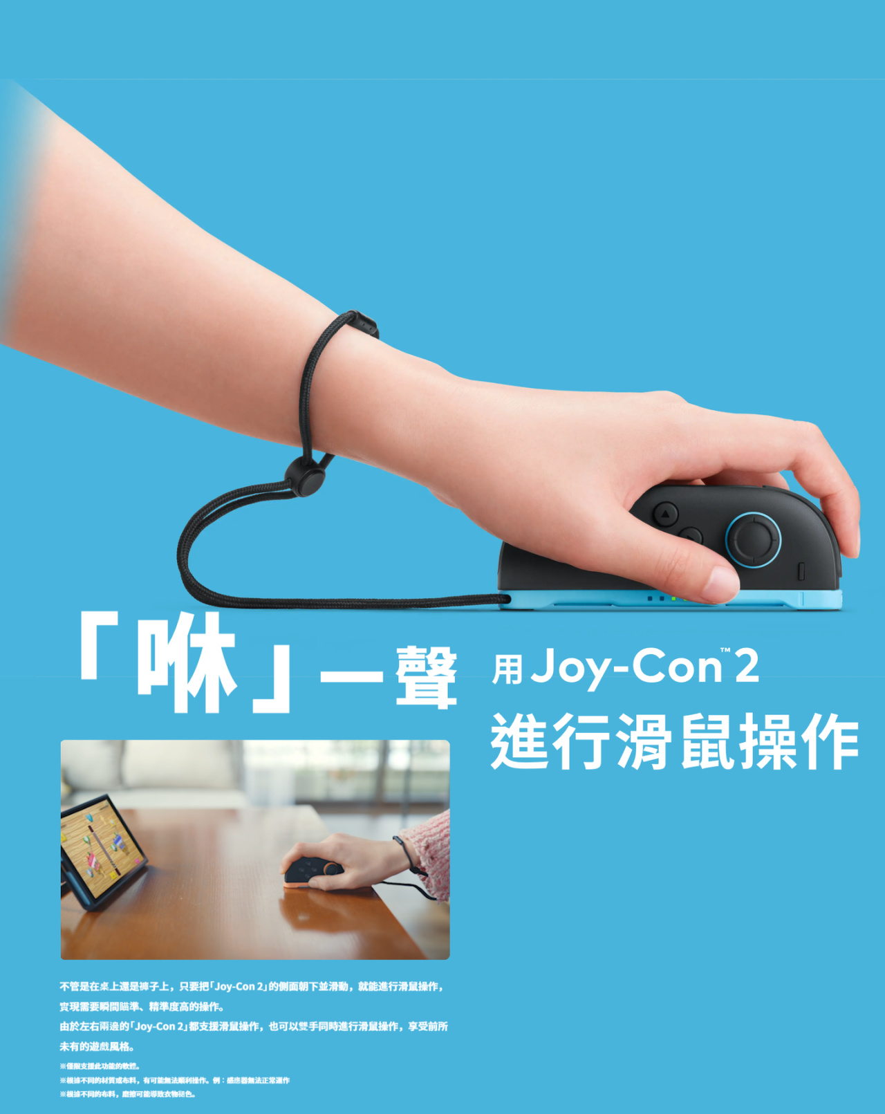 joycon手柄,連接方式改爲“左右直插”並磁吸固定,側鍵變大,新增C鍵(語音鍵)和鼠標功能;