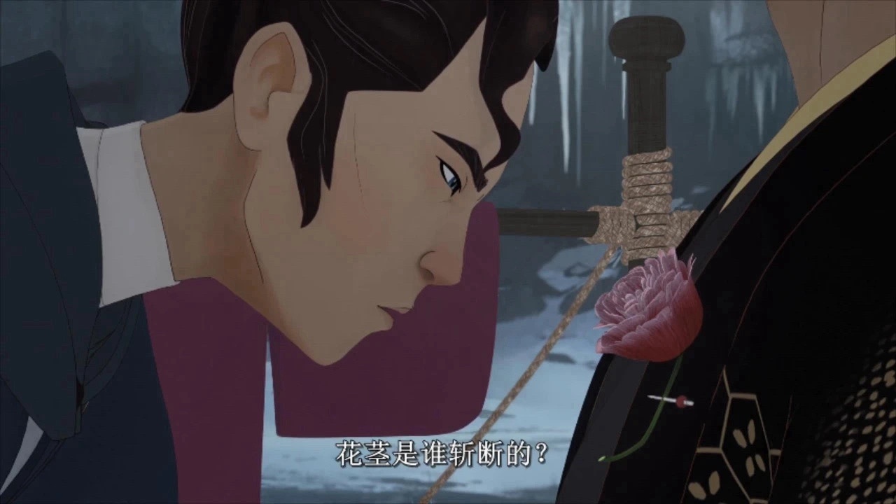 斬斷的花,這個來自吉川英治宮本武藏小說中的故事,寫武藏找柳生石舟齋比武,柳生石舟齋不肯,寫信拒絕,並切了一株芍藥花的花枝給武藏,結果武藏看了花的切口後自慚形穢,感到功力不足。這段被金庸稱爲武俠小說中難以超越的經典情節。