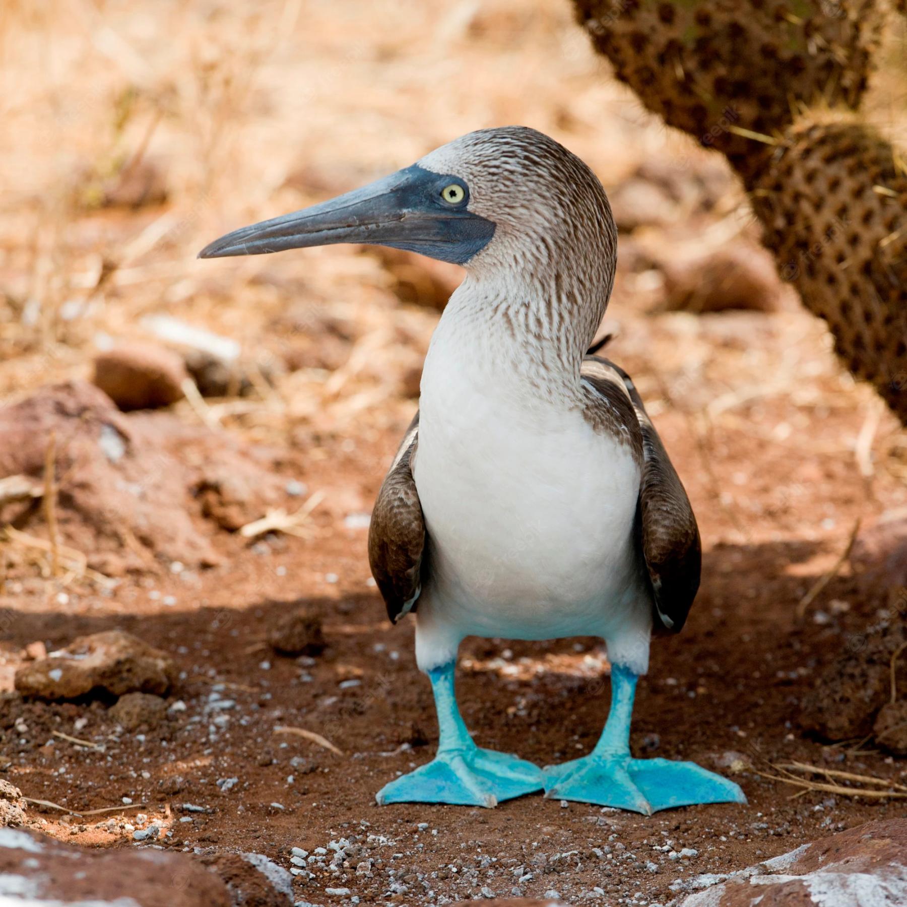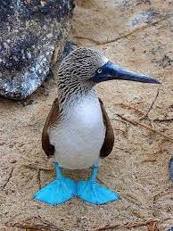 蓝脚鲣鸟和其他海鸟一样,在陆地上十分笨拙,所以像小丑一样。至于为什么愚蠢呢,因为它们毫不畏惧人类。