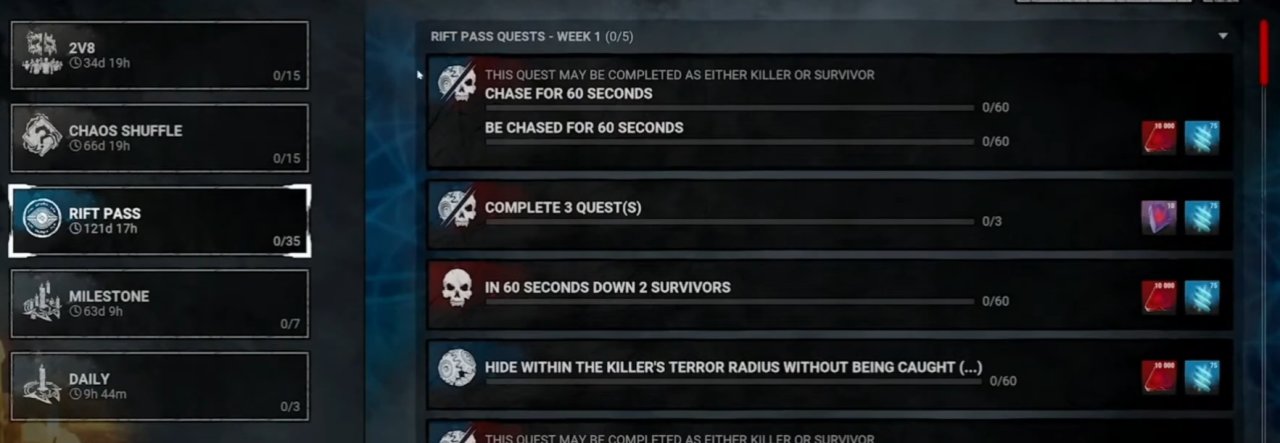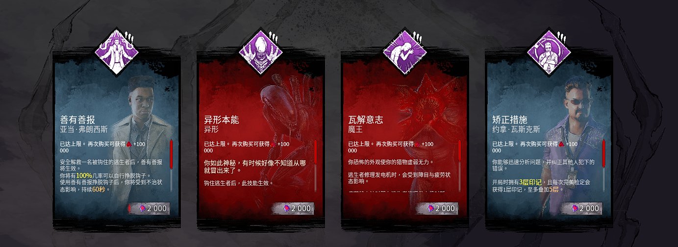 划痕改进/投降上线/乌鸦巢穴小改,添加新变种地图死亡沙漠/逃生者得分事项修改/聊天窗口改进/军团加强/异形大改没活出测试服,小幅平衡/好孩子小小幅加强/部分杀手恐惧范围变更/黄条缝合变短/击倒出局换了新技能。