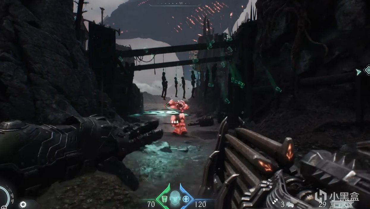 除開“盾鋸”還有新增鏈枷、狼牙棒、電擊拳套三種近戰武器,終結動作更簡潔但保留了暴力反饋。並且近戰攻擊消耗次數,需通過完美彈反或擊殺恢復,鼓勵玩家在主動進攻。