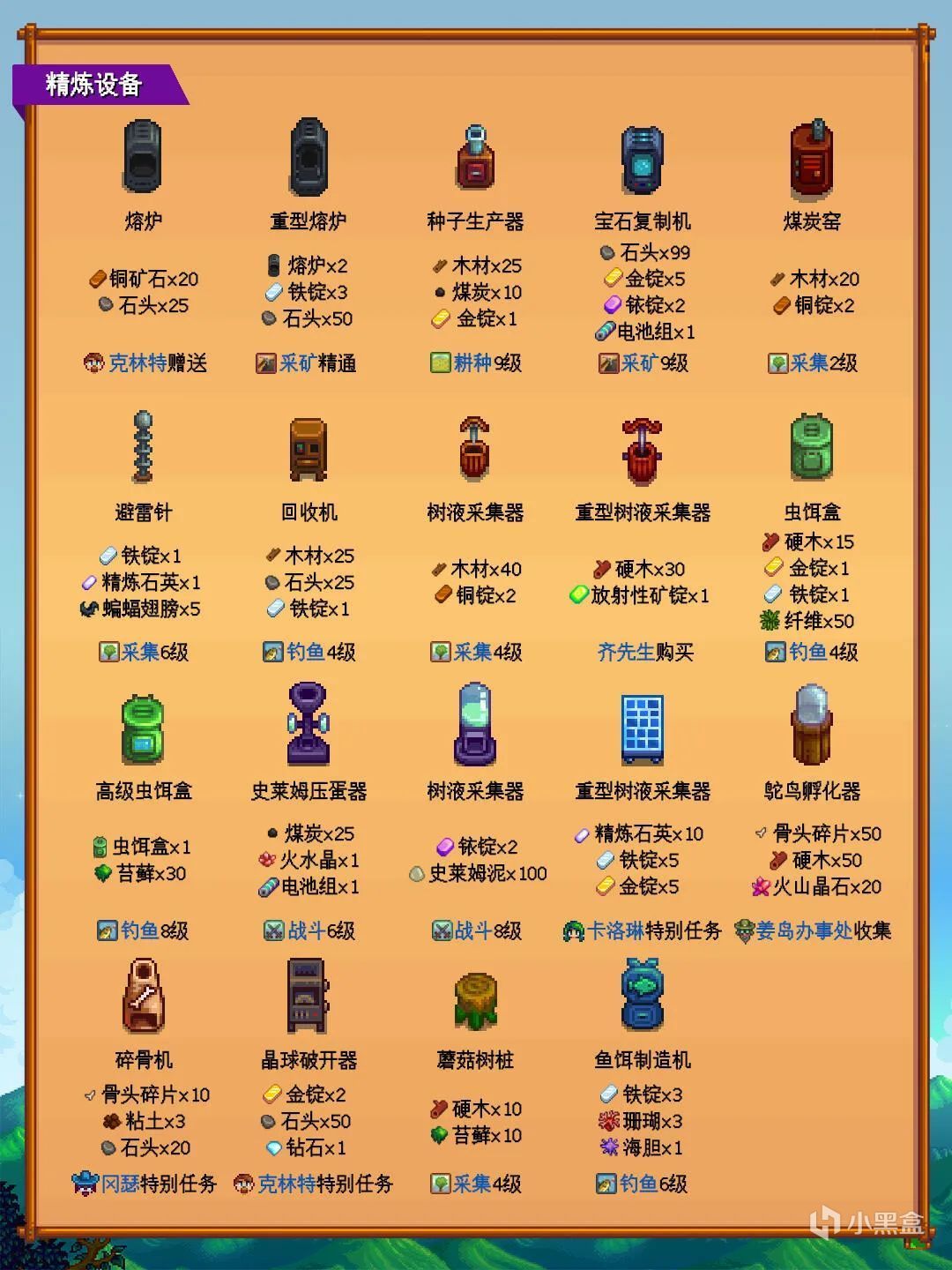 今天給大家分享下《星露穀物語》可以製作的製造工具全圖鑑及所需要的材料和打造圖紙來源。