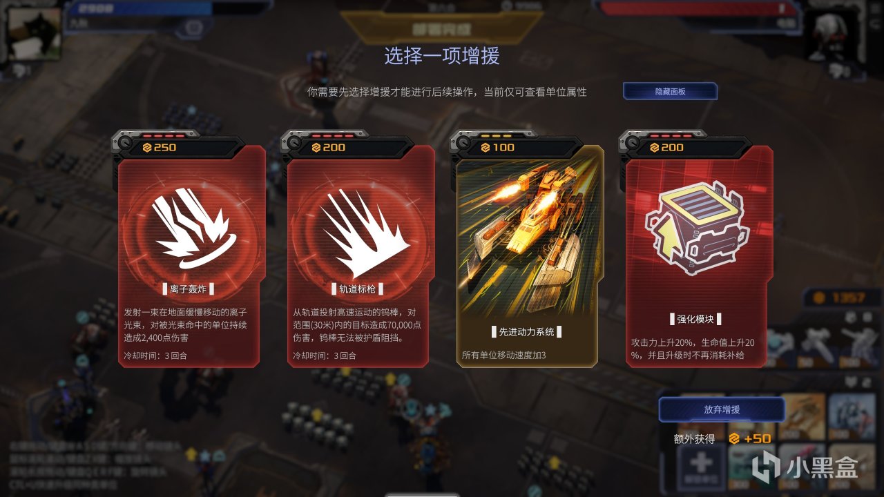 隨着回合推進,玩家能夠選擇增援,獲得各種各樣的增益。可能是強化機甲、或者是獲得攻擊武器、強化模塊、一隊或幾隊高等級機甲。