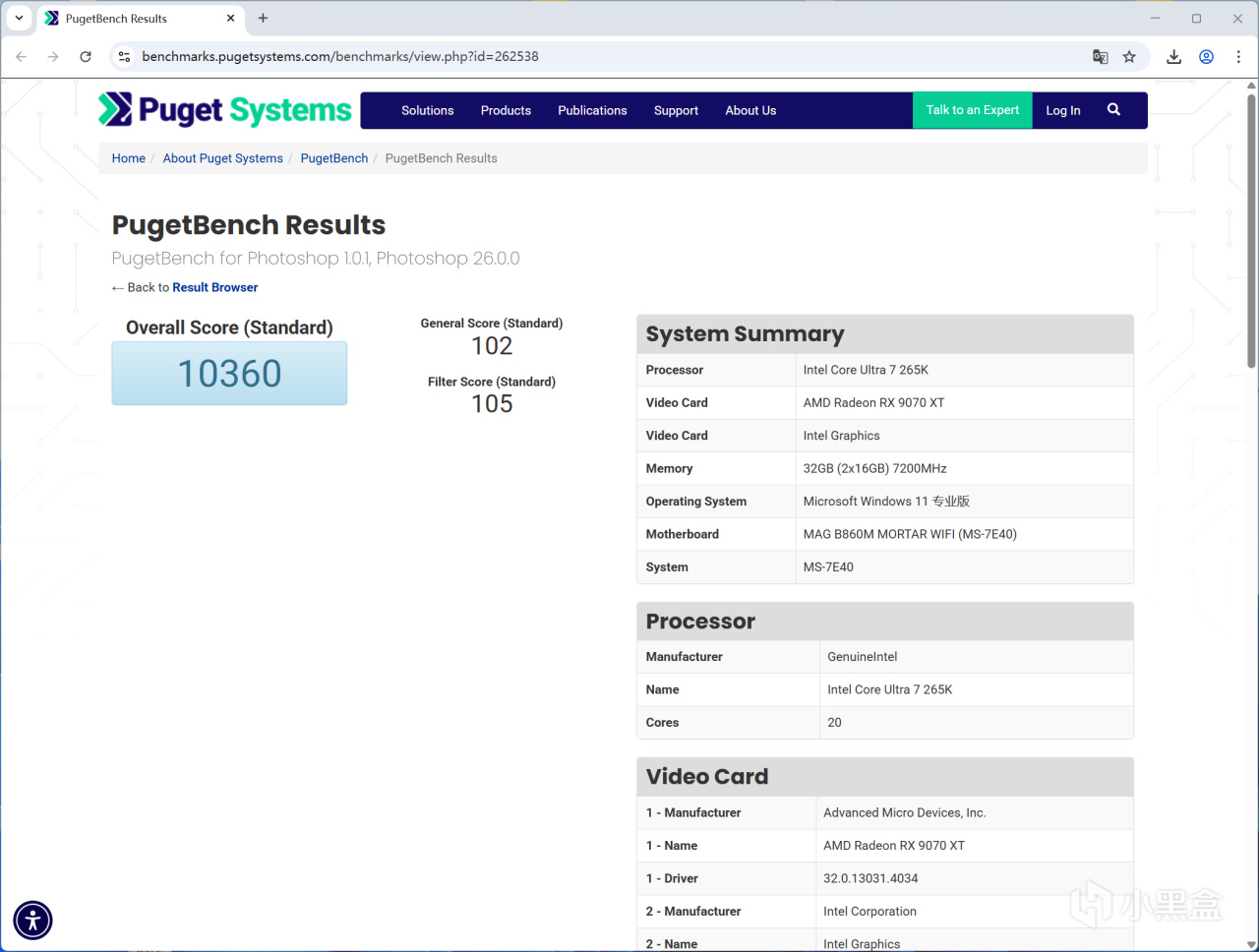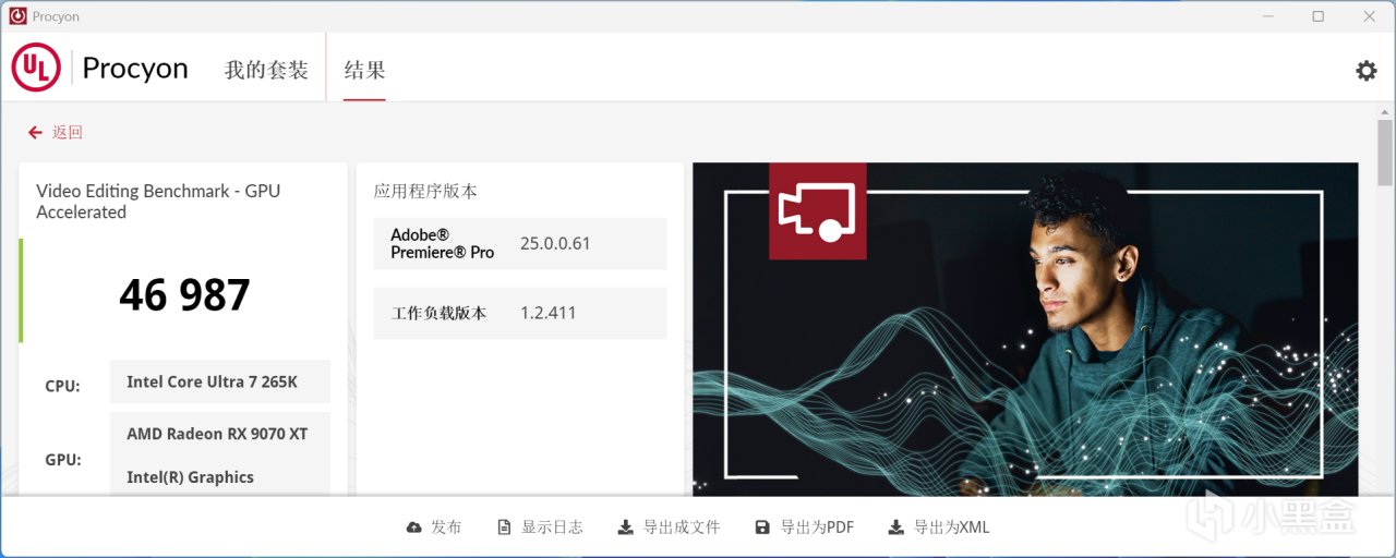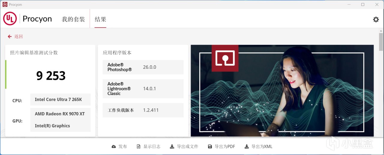 UL Procyon照片編輯基準測試,265K分數爲9253
