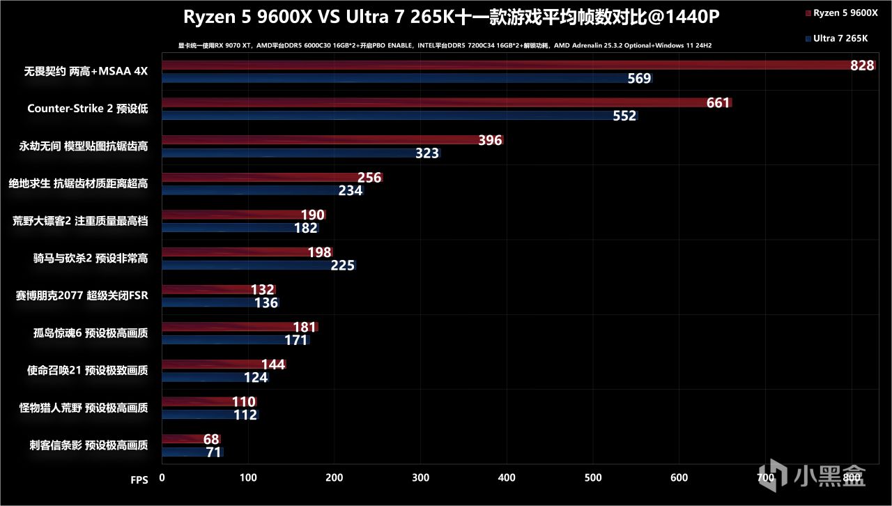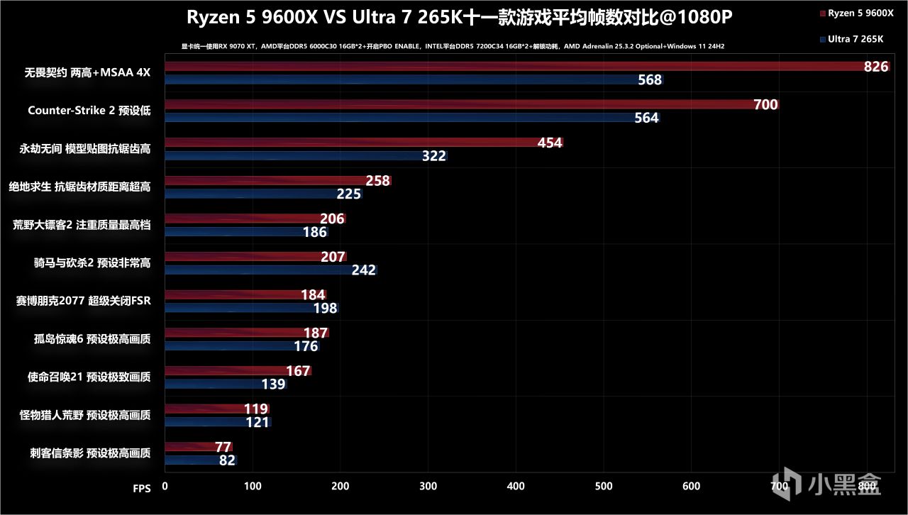 而3A單機項目9600X也不甘示弱,荒野大鏢客2和使命召喚21都能領先10%以上,反觀265K能贏較多就只有騎馬與砍殺2,熟悉這款遊戲的朋友應該都清楚,它是一款不止8核16線程優化的遊戲,而千元CPU主流定位就是6大核心沒毛病,265K與9600X差價1000元這不是應有的水平嘛。