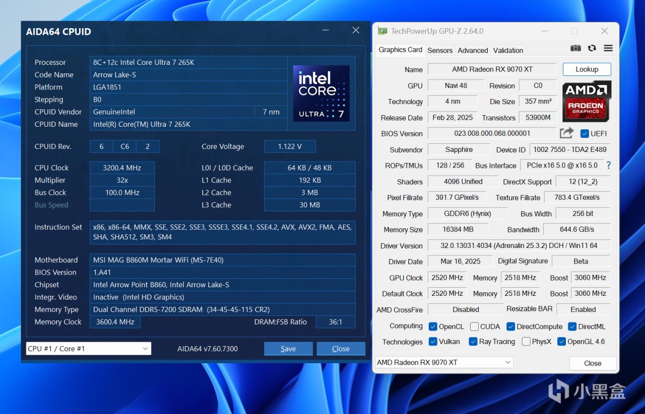 265K平臺環境,CPU全解鎖PL1和PL2功耗,INTEL帶K系列一般需要搭配高頻內存,所以選擇的是DDR5 7200C34 16GB*2內存套裝開啓XMP,藍廠主板則是B860,對應價位也就是B850M。