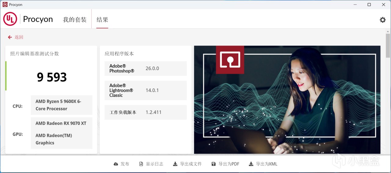 UL Procyon照片編輯基準測試,9600X分數爲9593