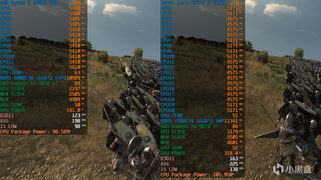 2K《騎馬與砍殺2》9600X VS 265K OSD監測