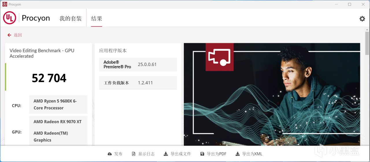 UL Procyon視頻編輯基準,9600X分數爲52704