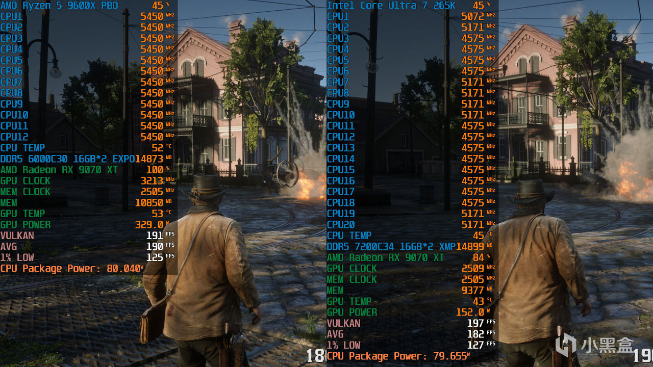2K《荒野大鏢客2》9600X VS 265K OSD監測