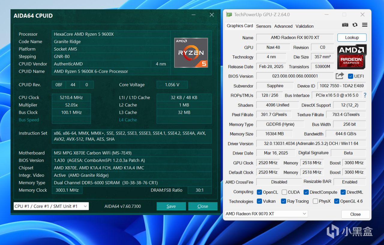 9600X平臺環境,CPU開啓PBO ENABLE檔(解鎖功耗),搭配主流用戶常用的DDR5-6000C30 16GB*2內存套裝開啓EXPO,測試主板是X870E,和B850M用起來性能也一致不影響。