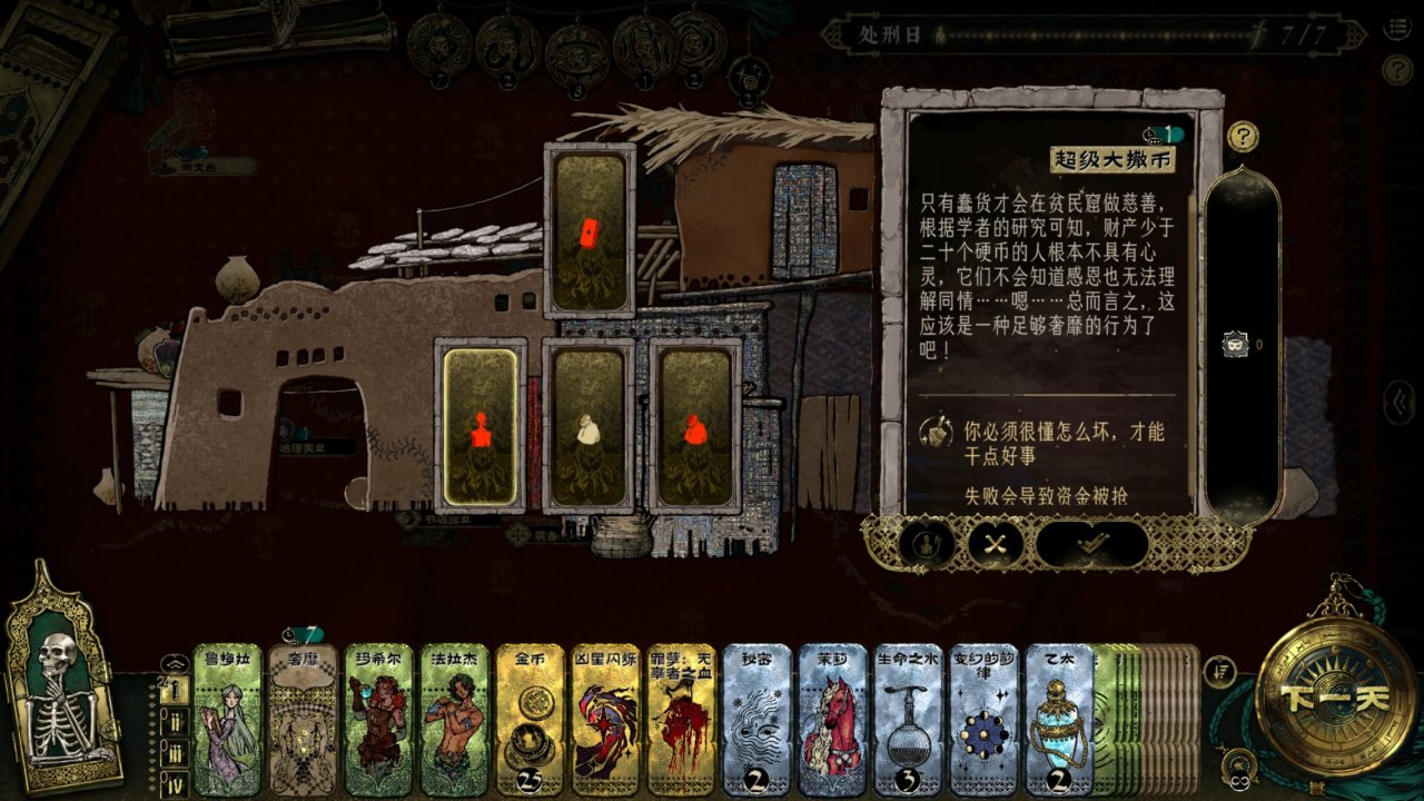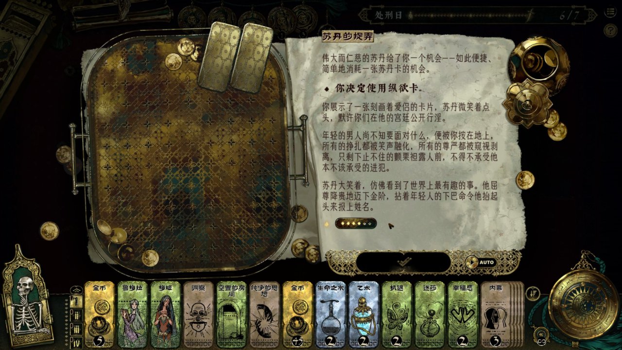 苏丹牌决定了游戏的输赢,也决定了玩家的生死,如何将一张张苏丹牌安排到合理的事件中,这就是游戏的主要玩法。