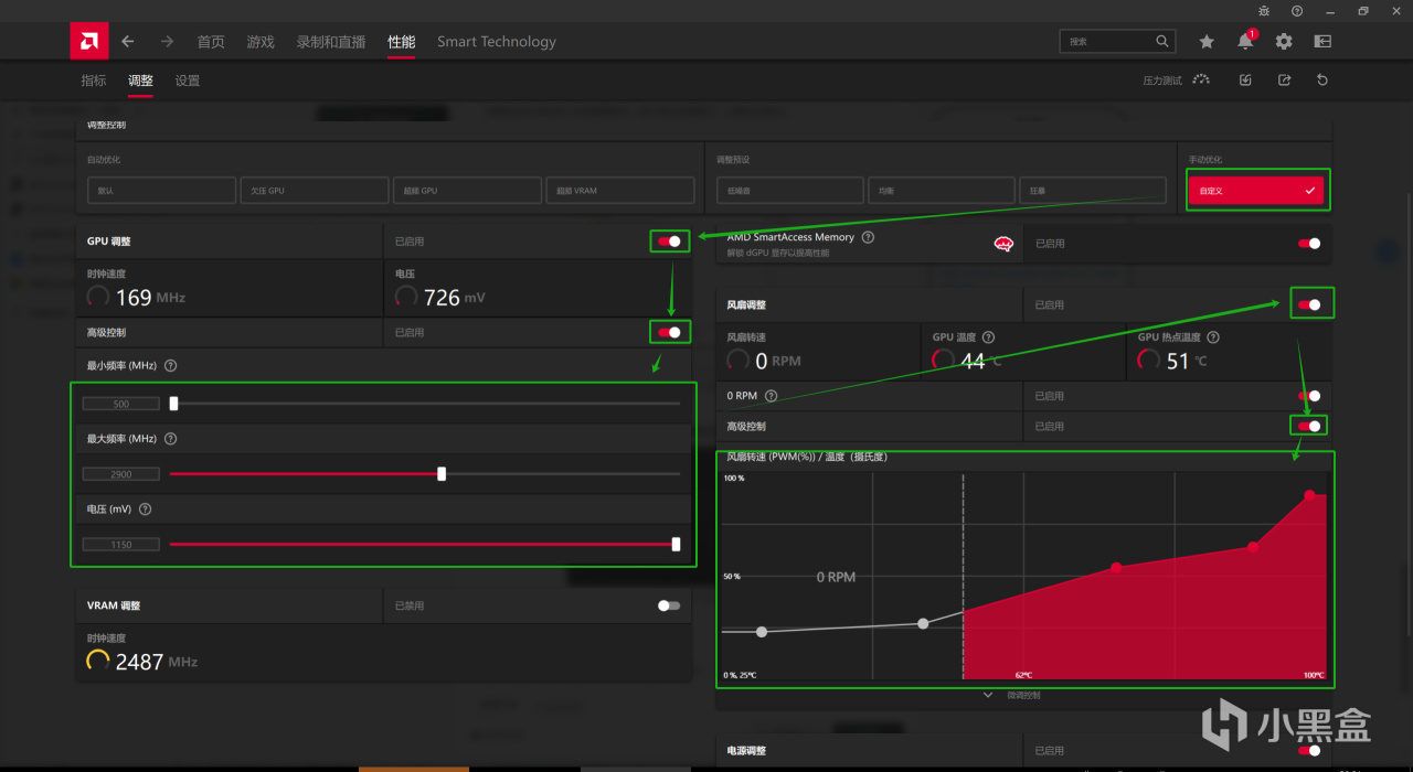 風扇:調整至全速,找到可接受的噪音閾值,設置最大風扇轉速與曲線(默認風扇策略過於靜音,溫度較高)