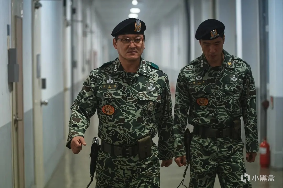影片配樂以低沉絃樂貫穿始終,時而點綴硬打擊樂器,近景處則以長時間留白讓緊張氛圍逐級渲染。雖整體風格氣質完整,但相比某些韓影經典之作(如《寄生蟲》)的配樂,這裏略顯平實甚至有點暗淡,缺乏能給人記憶點的旋律。大環境音效上卻做到了非常好的光影氛圍配合,例如在軍事圍攻中槍聲迴盪與士兵喘息音頻被處理得尤爲真實。