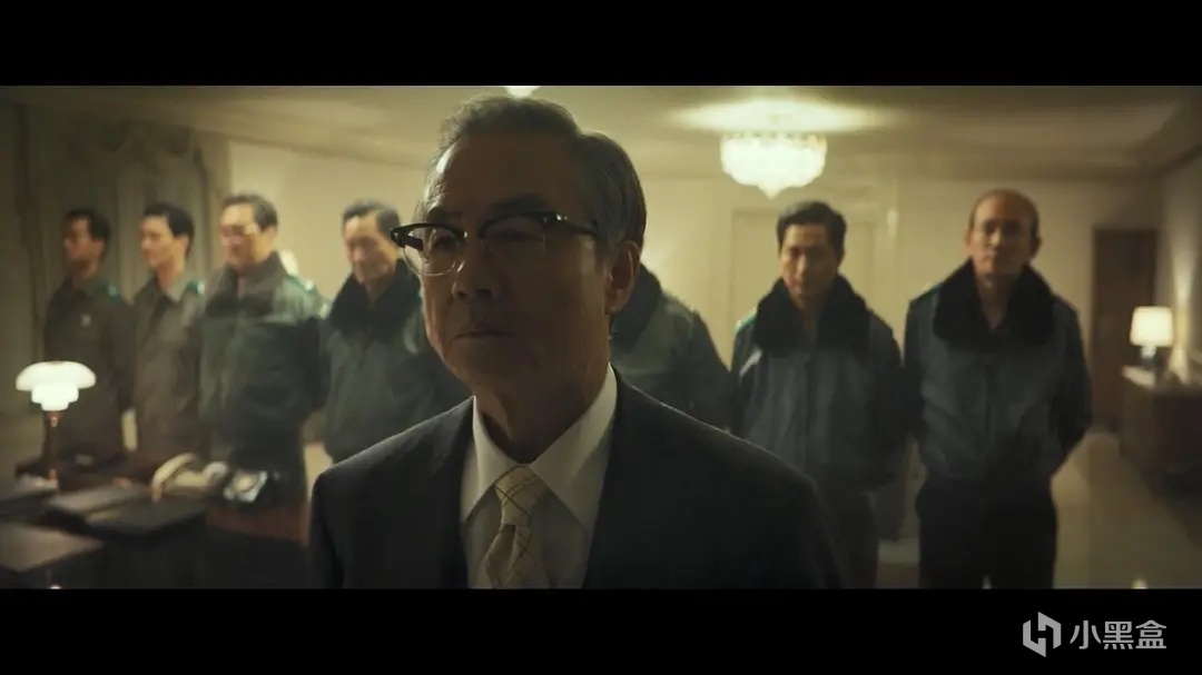 全片視覺風格偏冷峻,暗調且帶有強烈的壓迫感。導演多次使用近景特寫推至人物眼神交代情緒,尤其是全斗煥的“威權鏡頭”幾乎每次都帶着潛在壓迫——鏡頭多從低俯角仰視,給角色注入某種“危險感”。而鄭雨盛飾演的李泰信則常與背景融爲一體,象徵他的孤立無援。兩種鏡頭交織,完成了對角色內外對比清晰刻畫的補充。
