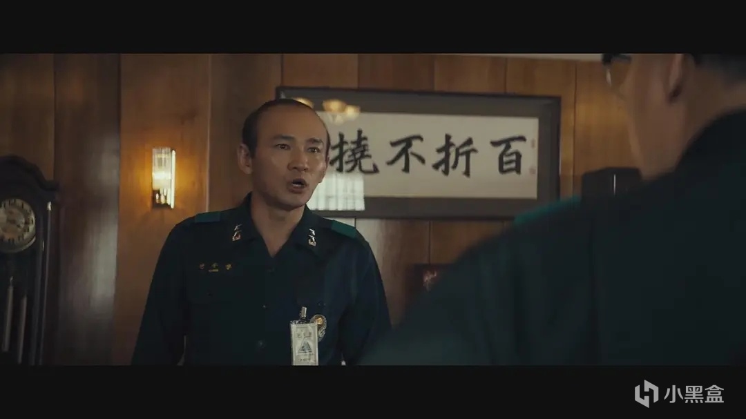 影片的服裝與道具非常考究,尤其是對軍裝和會議場景的佈置還原了上世紀70年代末韓國的時代感。而諸如酒局場面裏導演設計對白、中西文化風格交雜的桌面擺設、甚至牆上“天下雖安、忘戰必危”的中文標語,都細緻傳遞着權力話語的隱喻和緊張氣氛。
