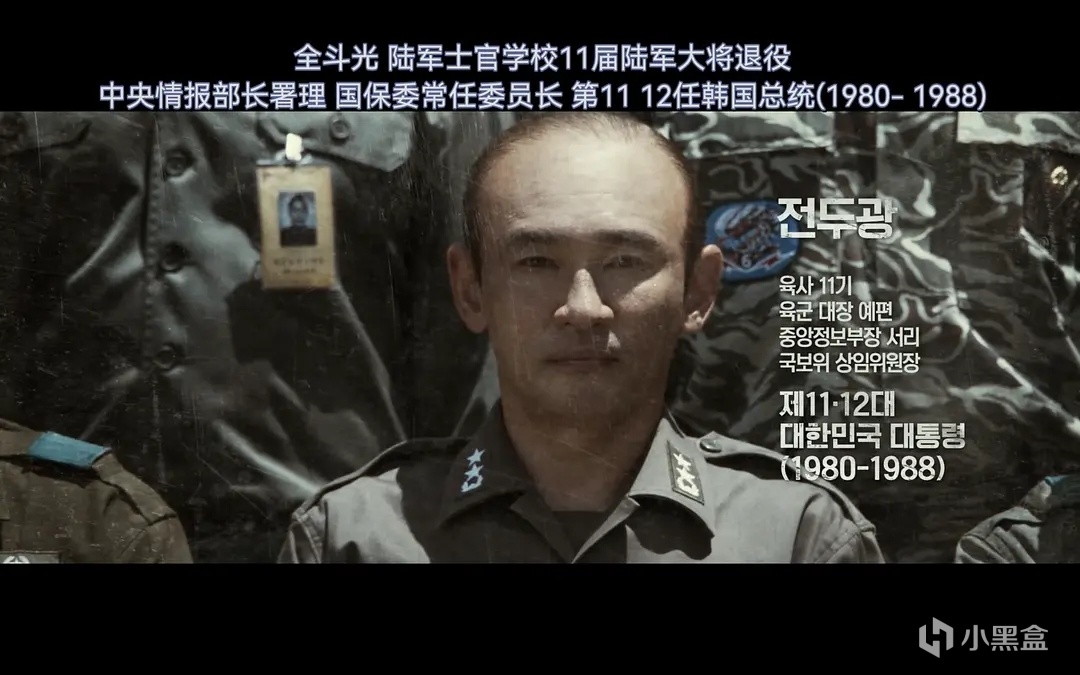 黃政民(飾全斗煥): 韓國影壇的實力派之一,代表作《老手》《新世界》。他在片中通過細膩的表演詮釋了全斗煥的複雜性,尤其他那冷峻的眼神和無形的威壓感,勾勒出了這個角色的野心深不可測。