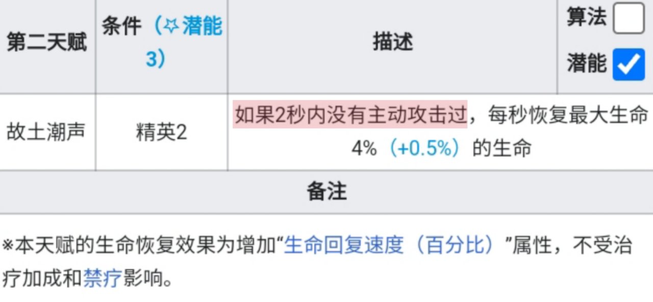 第二天賦和②技能絕配,40秒內穩定每秒回血,受擊反擊時也不會中斷第二天賦的回血效果,每秒回血量2872×0.04≈115點,同時②技能期間棘刺防禦力提升至472×2.1≈991是重裝水準了,雖然血量上限還是低一些,但是有自回血、較高防禦,身板還算是挺硬的,用來承傷並不容易暴斃,後期補充領主y模組如果提升第二天賦回血比例的話對②技能更有幫助,不過y模特性的加攻速效果對②技能不起作用