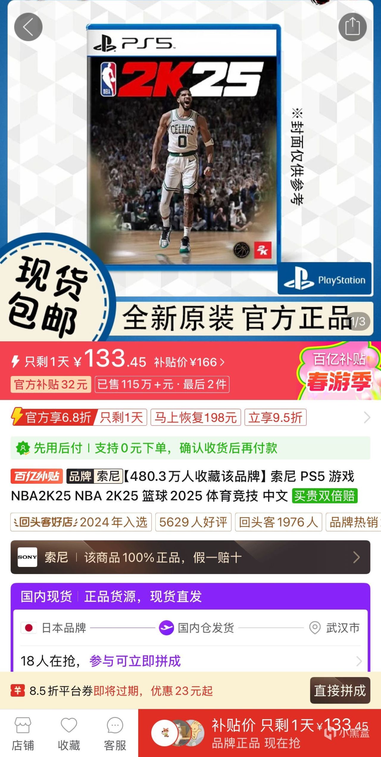 4.PS5《NBA 2K25》港版中文133.45元全新包郵,這種年度籃球遊戲,每年都會出新版,如果2K26出了,2K25會跌更多,當然現在這個性價比也挺高,想玩玩籃球遊戲的PS5新玩家可以入手。