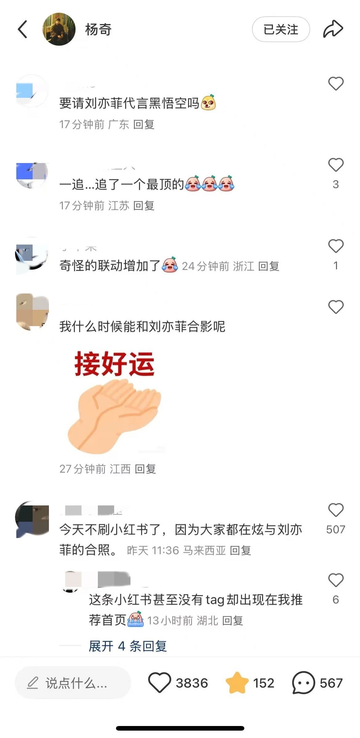 并且值得注意的是,杨奇在几日之前发布与演员刘亦菲的合影,配文“偶尔……也追星的”,引发“刘亦菲或将参与DLC配音或演出”的讨论。尽管双方未透露合作细节,但这一跨界联动进一步点燃了玩家对游戏未来内容的想象。