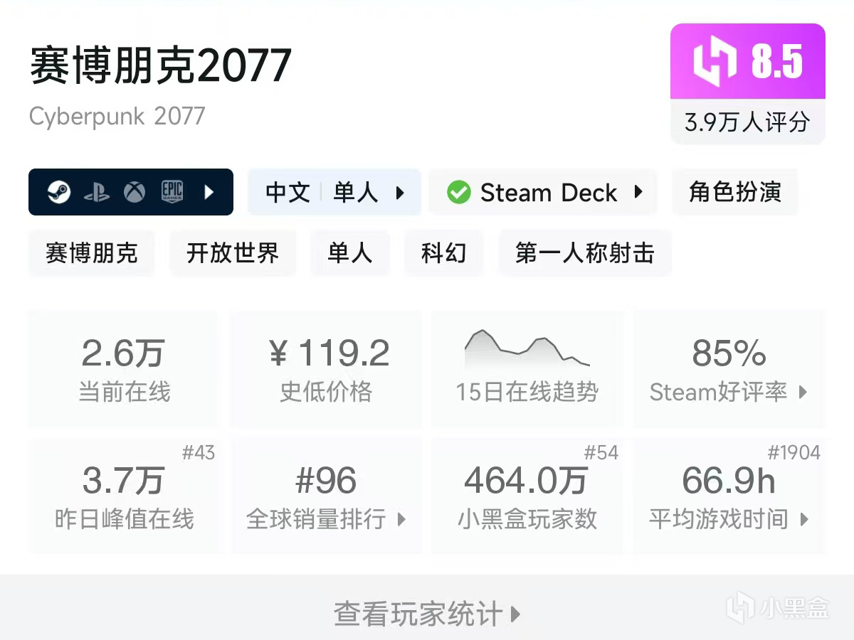 開局天崩,好在後續更新優化,慢慢的也是必玩之作,中配天花板。故事發生在夜之城,權力更迭和身體改造是這裏不變的主題。玩家將扮演一名野心勃勃的僱傭兵:V,追尋一種獨一無二的植入體——獲得永生的關鍵。自定義角色義體、技能和玩法,探索包羅萬象的城市。玩家做出的選擇也將會對劇情和周遭世界產生影響。