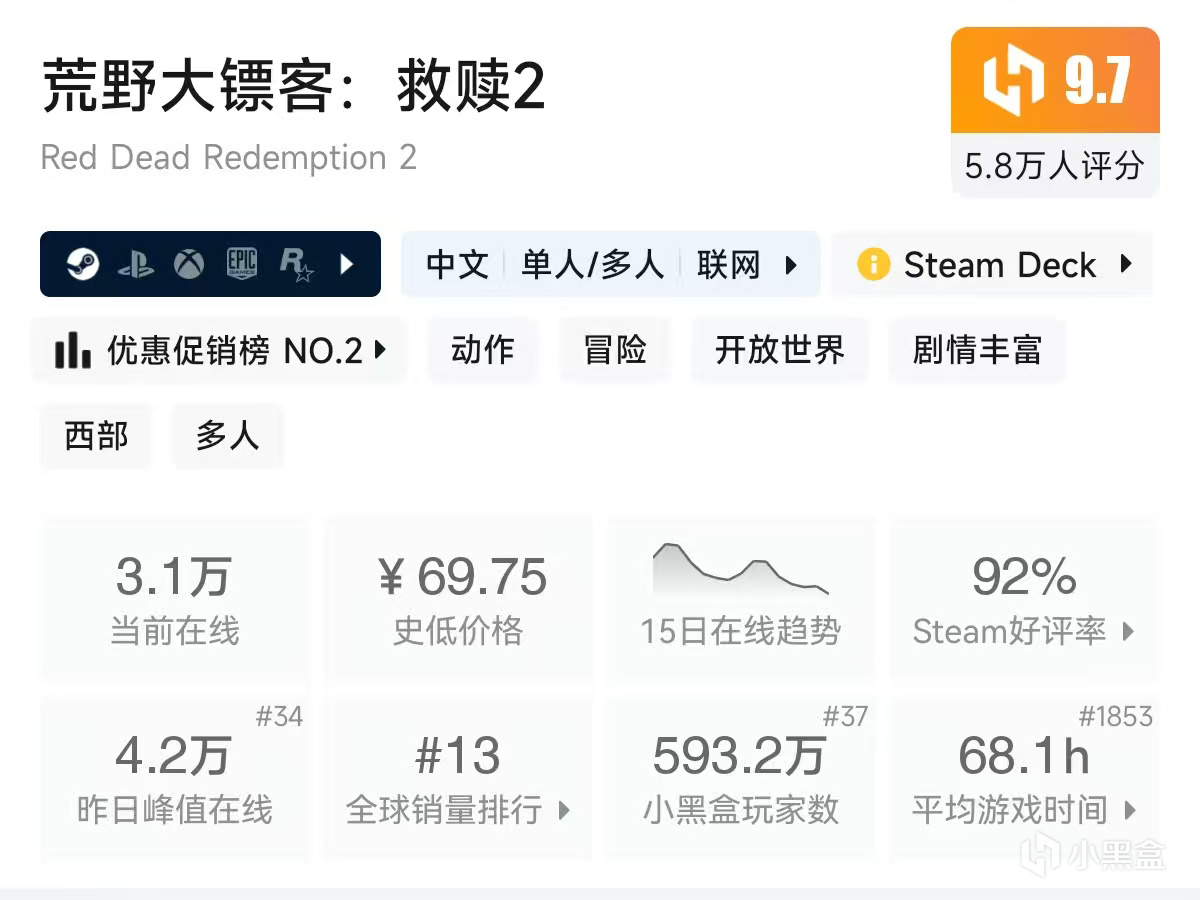 R星出品,必屬精品,可惜此作是趕工收尾,但不影響它的優秀,遊戲中述說亞瑟·摩根和聲名狼藉的範德林德幫派的傳奇故事,讓玩家體驗在19世紀的最後歲月裏橫跨美國的亡命之旅