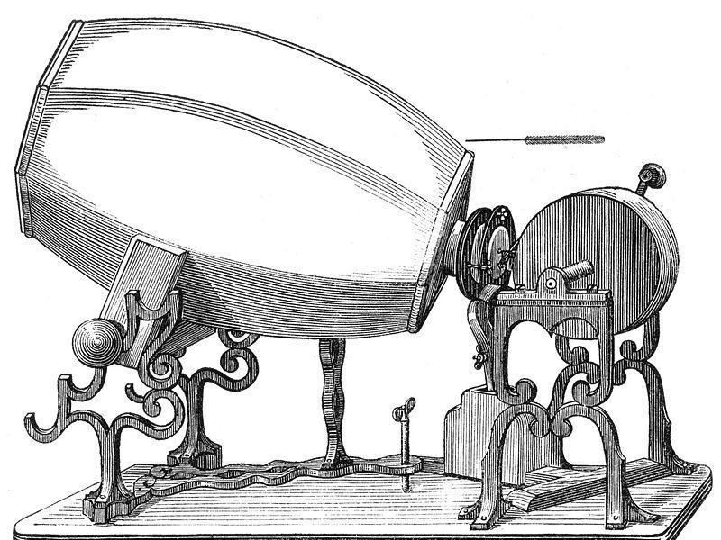 1853年,他在編輯本書名爲《生理學特徵》的書時,看到了對於人耳的原理解剖圖,便有了靈感,“能否用機器模仿人耳,以此來實現記錄聲音呢?”在這樣的構想下:(機器製造時間存疑)